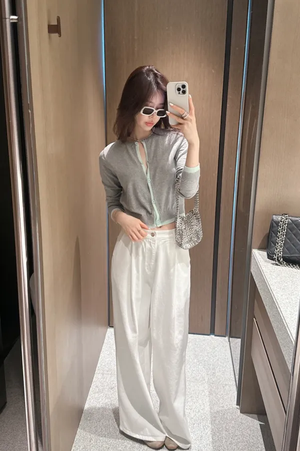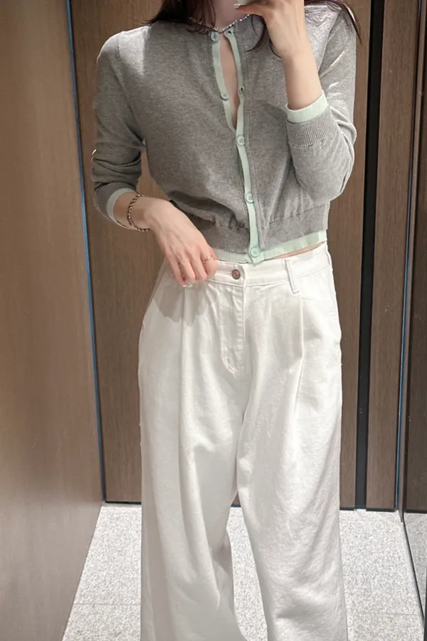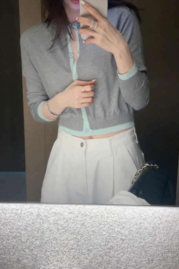 marke薄荷拼灰色薄針織外套